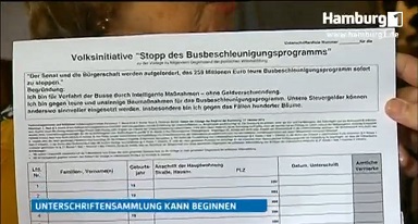 Im Kampf gegen die geplante Busbeschleunigung hat die Volksinitiative „Stopp des Busbeschleunigungsprogramms“ im Hamburger Rathaus offiziell die Genehmigung zur Einholung der benötigen 10.000 Unterschriften erhalten. Das rund 260 Mio. Euro teure Projekt des Senats ist aus Sicht der Kritiker reine Geldverschwendung und ein gravierender Eingriff in das Stadtbild. So sollen mehrere hundert Bäume weichen. Die Initiative hat mit Ihrer Unterschriftenaktion jetzt ein halbes Jahr Zeit die erforderlichen Stimmen gegen die geplanten Bauvorhaben zu sammeln.
